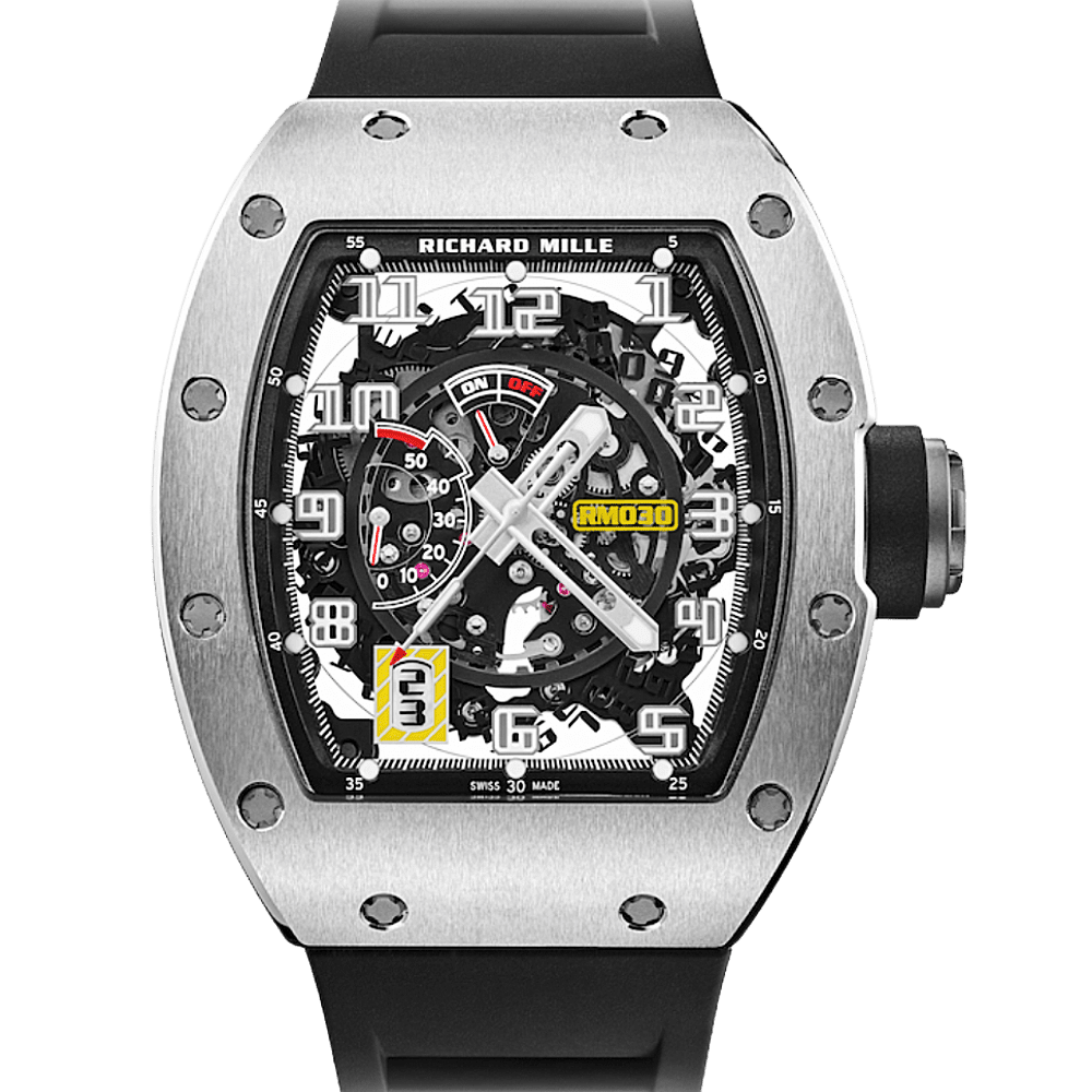 The baseplate and the bridges of the RM 003-V1 are crafted from grade 5 titanium, a biocompatible, highly corrosion-resistant and remarkably rigid alloy, which enables the gear train to function effortlessly.