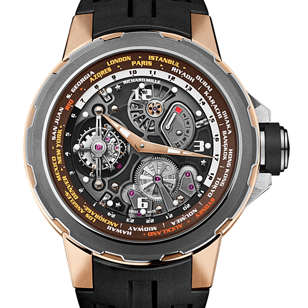 蓝色石英纤维亚洲款双时区陀飞轮腕表